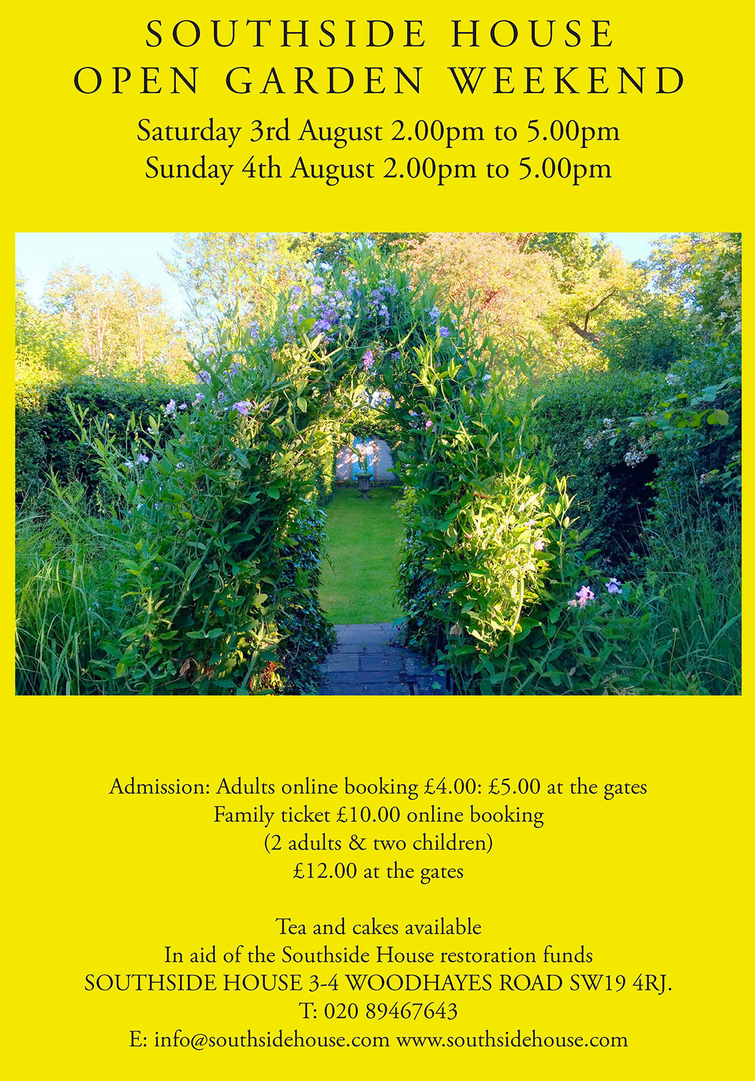 Admission cost: £5 for Adult ( £4 booked online) and £12 Family ticket (£10 when booked online). Event starts on: Saturday 3rd August and Sunday 4th August. On both days the garden is open for the visitors from 2pm until 5pm.